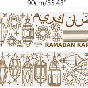 ARS® Islamic Muslim Wall Decor Stickers,Eid Mubarak Ramadan Glass Lantern Stickers Decals, Window Clings for Eid Ramadan Decorations, 90x30 cm
