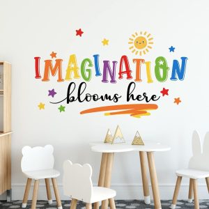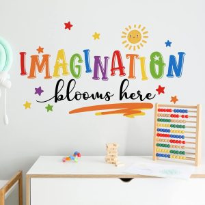 ARS® Imagination Blooms Here Kids Playroom Classroom Wall Decals Stickers, Watercolor Sun Star Baby Boys Girls Nursery Decoration Bedroom Art, Neutral Preschool Toddlers Daycare Room Decor