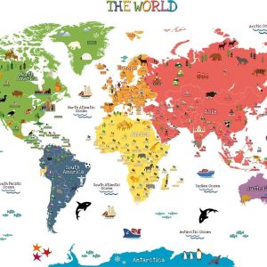 ARS® Kids Educational Removable World Map Peel and Stick Large Wall Decals Stickers for Children Nursery Bedroom Living Room