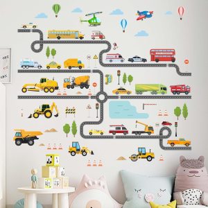 ARS® Large Construction Vehicles Car Wall Stickers - Trucks Excavator Tractor Wall Decals - Kids Boys Bedroom Playroom Daycare Wall Decor