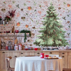 ARS® Large Christmas Tree Wall Decals DIY Christmas Wall Decals Peel and Stick Watercolor Christmas Tree Wall Stickers Removable for Xmas Bedroom Living Room Office Home Decor DIY Art