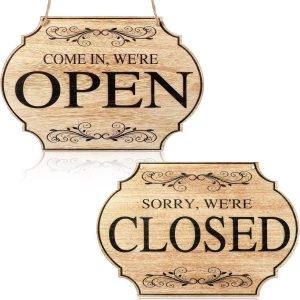 ARS® Wooden Store Open and Closed Business Sign Two Sided Reversible Come in We're Open or Closed Store Hanging Sign for Coffee Bar Shop Door Window, 11.8 x 7.8 Inch (Wood Color Board, Black Words)