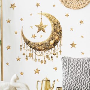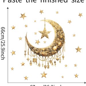 ARS® Ramadan Decorations for Home,Islamic Muslim Wall Stickers Decals,Eid Mubarak Ramadan Decor Lantern Moon Star Window Clings for Home Living Room Bedroom