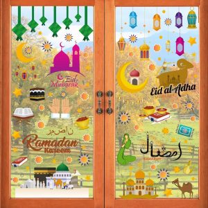 ARS® Ramadan Decorations Window clings Eid Mubarak Window Stickers Party Supplies Decorations Muslim Happiness Ramadan Eid Al-fitr Window Decor for Home Window Stickers