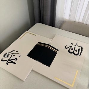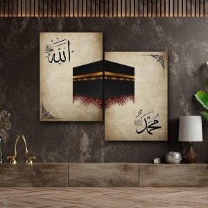 ARS® Abstract Islamic Wall Art of Ka'bah Minimal Kaa'bah Painting Framed Fine Art Wall Décor for Living Room Bedroom Dining Room Office Gifting 2 Piece