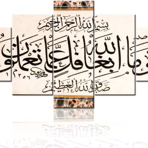 ARS® 5-Piece Islamic Canvas Wall Art, Surah Ayatul Kursi, Al Falaq & Al Nas, 60x28 inches, Gray