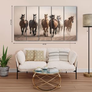 ARS® 7 horses running vastu frame painting Set of 5 Big Size (27x48) Multiple Frames Wall Art Painting for living room,Bedroom,-Wooden Framed-Digital Painting
