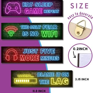 ARS® 4 Pcs Printed Neon Gaming Posters, Teen Boys Room Decorations, gamer wall Decor for bedroom Wooden