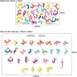 ARS® Arabic Letters & Numbers Wall Stickers - Alphabet Prints & Decals for Learning & Decoration