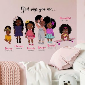 ARS® Black Girls God Says You are Beautiful Inspirational Wall Decals Stickers, Religious Quote Nursery Decorations African American Bedroom Art, Motivational Afro Toddler Kids Baby Room Decor