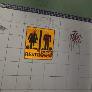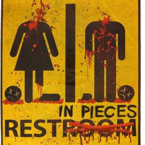 ARS® Bloody Restroom Sign Sticker - Halloween, Haunted House and Horror Themed Parties Bathroom Door Decoration - Removable, Sticks on Most Surfaces, Comes Off Clean