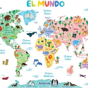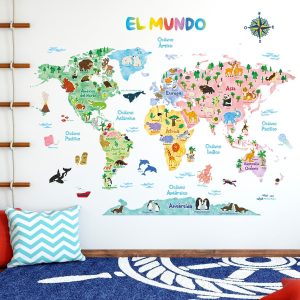 ARS® Animal World Map Wall Decals - Peel & Stick Removable Nursery Decor | Educational Mapa del Mundo for Kids’ Bedroom or Living Room | Fun Wildlife Themed Stickers