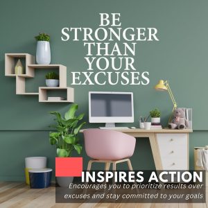 ARS® Be Stronger Than Your Excuses Wall Decal Inspirational Wall Decal Motivational Office Decor Quote Inspired Motivated Positive Wall Art Vinyl Gym Sticker School Classroom Decor