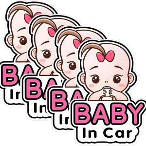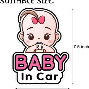ARS® Baby in Car Stickers, 5PCS 19x14cm Stickers for Car, Funny on Board Car Sticker with Character, Removable Baby Safety Warning Sticker for Car Door Rear Bumper Window (Pink)