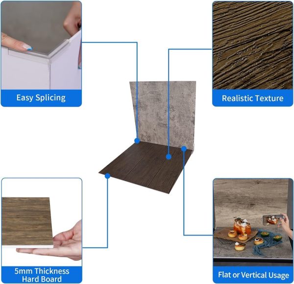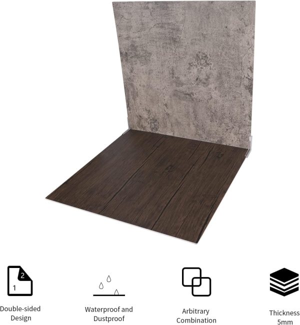 ARS® 2 Pcs 21.6in/55cm Photo Backdrop Boards, Double Sided Wood & Cement Texture Realistic Surface Background for Flat Lay Food, Tabletop Product Photography