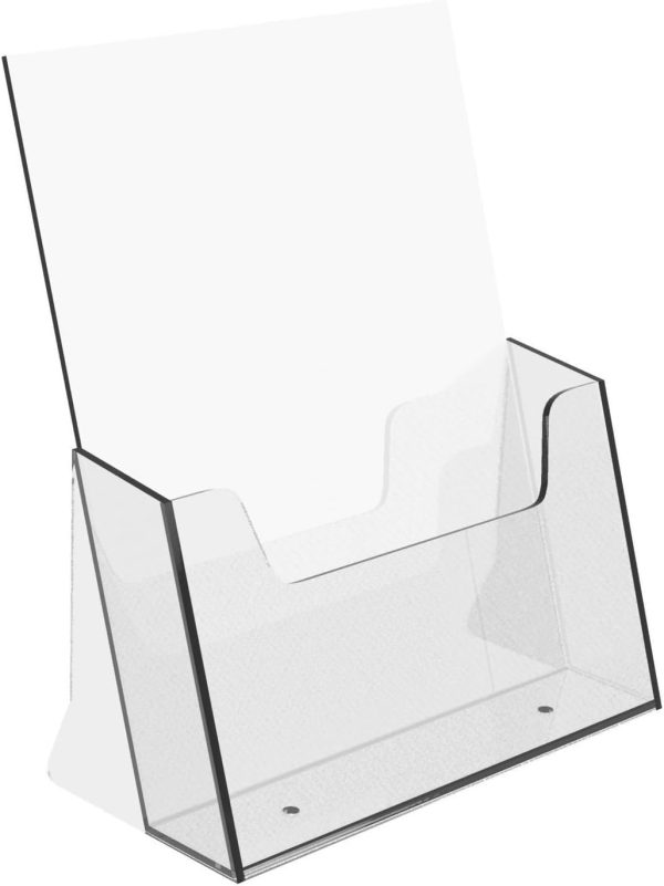 About this item PRACTICAL, CONVENIENT & FUNCTIONAL: This brochure holder has rounded and smooth edges for safety. It is compact and sits well on any surface. The slanted design makes sure that the brochures are easily viewable and stays in the holder without falling off. Premium Clear Acrylic: Made from high-quality transparent acrylic for a clean, professional look and long-lasting durability. CRYSTAL CLEAR DESIGN: Give your literature the attention it deserves. This brochure display stand is made from acrylic sheets that are completely transparent and flawless. This means that your pamphlet gets the best visibility possible. DURABLE ACRYLIC CONSTRUCTION: The acrylic used is durable and can handle everyday heavy-duty use without breaking, losing form, or cracking. The robust acyclic construction of this magazine holder keeps this holder looking new for years to come. VERSATILE USES: Not just for organising and displaying your brochures, this leaflet dispenser can also be used to organise your desk. Slip in your bills, memos, papers mails and keep your office or study desk free of clutter. PERFECT SIZE: This file magazine holder can hold any brochure, leaflet, or promotional material the most popular and standard size. Despite its holding capacity, desk magazine holder takes up minimum space on your desk and looks very elegant as well.