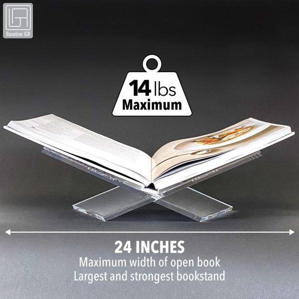 About this item Showcase your treasured books with this sleek and elegant acrylic bookstand. Perfect as a gift, it comes beautifully packaged in its own unique gift ready packaging. Designed to accommodate all books including larger ones, this sturdy bookstand is more versatile, durable and spacious than alternatives. Its stylish open design not only displays your books attractively but also protects their spines. This modern two (2) -piece collapsible X design is made from 5/16in (8mm) thick acrylic making it strong and lightweight. Assembled this book stand measures – W 12.5in (32 cm) – D 9.5in (24cm) – H 5.5in (14cm) and weighs 2.7lbs (1.2kg). If you love your books, display them in an open-book style that mirrors how you enjoy reading. This elegant bookstand is a perfect addition to your kitchen, study, bedroom or living room. It also makes a stylish statement in professional spaces such as a customer lounge, reception area, office or store. Designed to blend seamlessly with any setting, this sleek, modern and versatile stand adds a touch of sophistication and color wherever you place it. This bookstand is incredibly easy to assemble and dismantle. It comes in two pieces that slide together effortlessly. To assemble, align the two pieces with the logos facing up and the pointed ends facing each other then slide them together using the center slots. That’s it, simple and quick! When dismantled, the bookstand stores flat, making it ideal for saving space or taking it with you while traveling. Caring for this bookstand is simple and hassle-free, just wipe it clean with a soft dry cloth. If needed, you can use mild soap but avoid household cleaners or abrasive pads as they may damage the surface.
