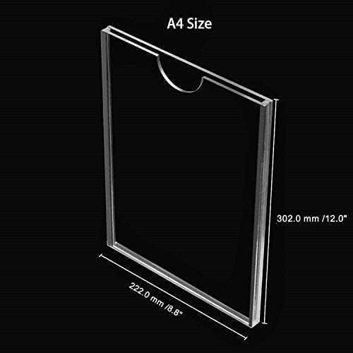 About this item Easy to Use – Package included double-sided tape, to install on walls, doors, windows, etc. places according to your own needs. Top loading, each sign holder has an opening on top for easy paper insertion. Highly Transparent Acrylic – The sign display holder is made of highly clear acrylic plastic material, long lasting use, make the paper better and clearer display, protect and support the inner paper, not easy bending. Suitable Size paper- A4 Size:210x297mm/8.3×11.7inch. Thickness: 2mm. Gap Width: 2.mm. Superior Material – acrylic display stand is made of high-quality acrylic material, which makes it look crystal clear, allowing you to get a better effect when displaying ads and menus. The simple and impurity-free appearance makes it look elegant. This flyer holder will not be yellow, blurred, or warp. If the surface gets dirty, it can be easily wiped clean Easy to use – The paper can be easily accessible from left or right during daily work. (Each sign holder has a protective film to avoid scratches, please remove the protective film before use)