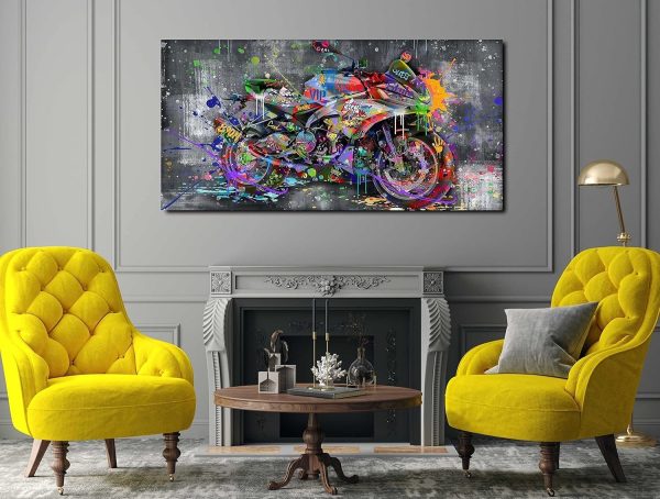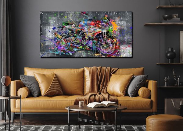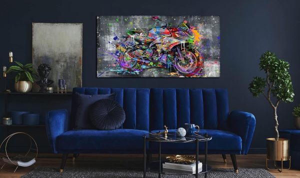 ARS® Banksy Motorcycles Wall-Art – Graffiti Canvas Art Wall Decor – Large Wall Decor For Living Room Ready To Hang Size 59″ x 29″