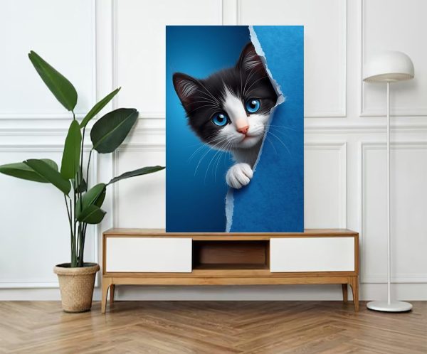 ARS® Cute Cat Canvas Wall Art for Decoration Frame easy to hang, 90x60cm, 1Pcs