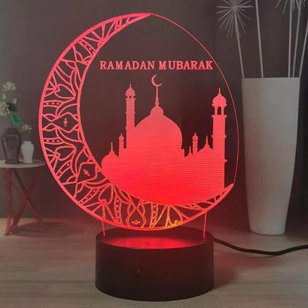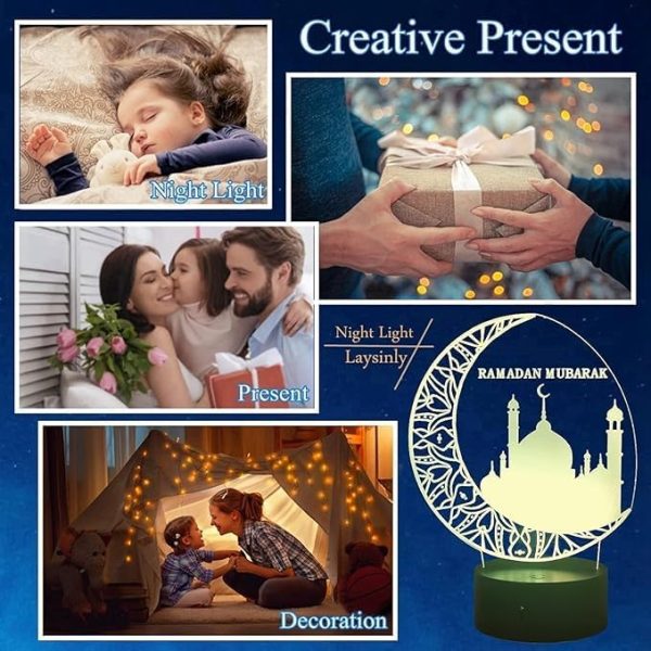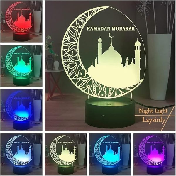 ARS® Ramadan 3D Night Light Mubarak Islam Muslim Church Desk Lamp 16 Colors Change Decoration Light Remote Control LED Night Lamp for Bedroom Living Room Eid al-Fitr Party Light (Moon)