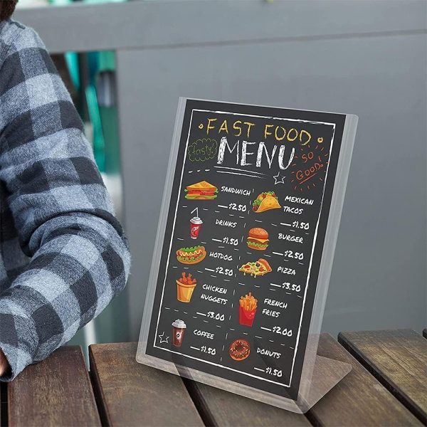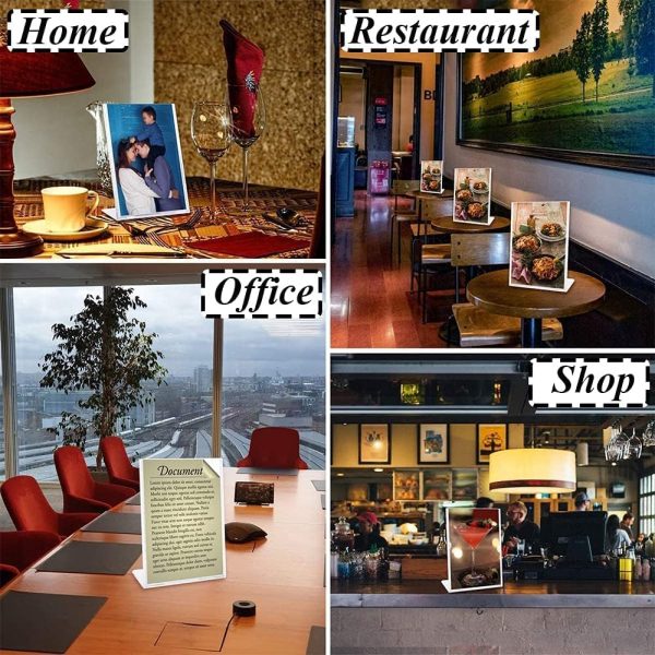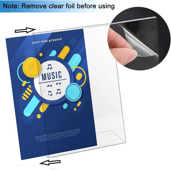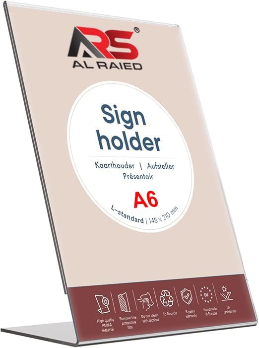 About this item ELEGANT DISPLAY FOR YOUR GRAPHICS: You receive a pack of 1 pieces. Display your advertisements, promotions, restaurant menus, leaflets and other important messages with our sign holders. These multipurpose holders can be used in offices, restaurants, school and other commercial environments Premium Clear Acrylic: Made from high-quality transparent acrylic for a clean, professional look and long-lasting durability. HIGH QUALITY POLYSTYRENE, AS CLEAR AS GLASS: We have carefully sourced high quality polystyrene to ensure that the sign holder lasts years of use. The quality of our sign holders protects your content from dirt and dust. FREESTANDING DESIGN & NON-WOBBLING BASE: The sign holder stands upright on its own without any additional support due to its L-shape. The wide flat base keeps the sign holder stable on countertops, office table, desktops and every other flat surface. Easy Insert & Use: Simply slide your paper in and out—no tools required, quick setup and replacement. GIVE YOUR GRAPHICS THE ATTENTION THEY DESERVE: The innovative slant back design makes the graphic easy to view from a height so the customers passing by will also easily notice the graphics. Clear polystyren construction gives your graphics a perfect visibility.