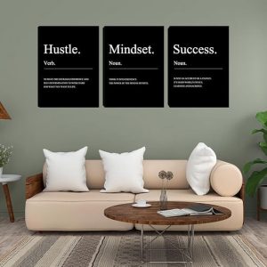 ARS® Motivational Wall Decor-Inspirational Hustle Canvas Wall Art, Positive Affirmation Wall Decor for Living Room Bedroom Classroom Office (36”Wx16”H) 3 Pieces