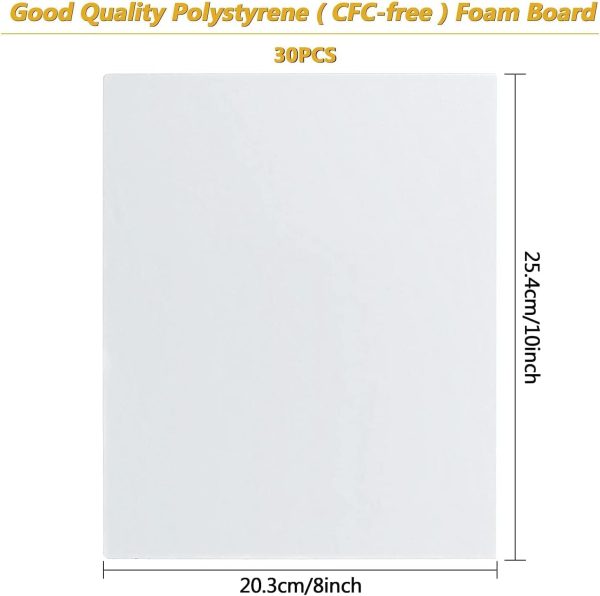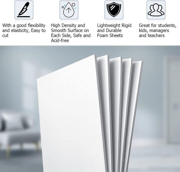 About this item Good Quality Foam Board: Using high-grade resilient polystyrene foam core. For added peace of mind, this display board is free of harmful toxlike CFCs. These excellent 11.7inx16.5in foam boards are lightweight but strong for portability and durability. Smooth white surfaces for markers, paints, and adhesives. Set of 30 Foam Sheets: You will get 30 pack 10inche X 8inche Foam Boards, 5mm/0.2inch Thick Foam Board. These white foam sheets are thick, so they their shape and don’t bend. Easily Cut: Easy to work with. You can be easily cut into shapes with a crknife or other knife – cut clean and easily, without leaving jagged edges. Worked great for using them to cut custom sized framing or other projects. DURABLE: Warp-resistant, memory retention foam core resists denting, ensuring your projects will look great for years to come. CREATIVE: Surface accepts felt-tip pens, ink, gouache, pencils, pastels, and pins, so you can express your creativity in any way you want – Perfect for all your point-of-sale, presentations, model-making, mounting and crafting needs. EASY TO CUT: Cut and shape easily with a craft knife, allowing you to create any size or shape you need