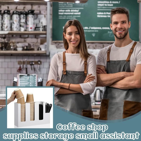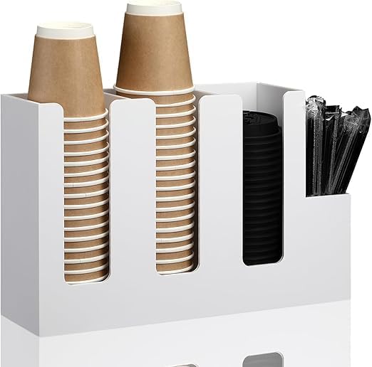 ARS® 4 Compartments Acrylic Coffee Cup and Lid Storage Organizer Holder Disposable Paper Cup Dispenser Organizer Plastic Lid Holder Accessories for Kitchen Bar Shop Party Supplies (White)