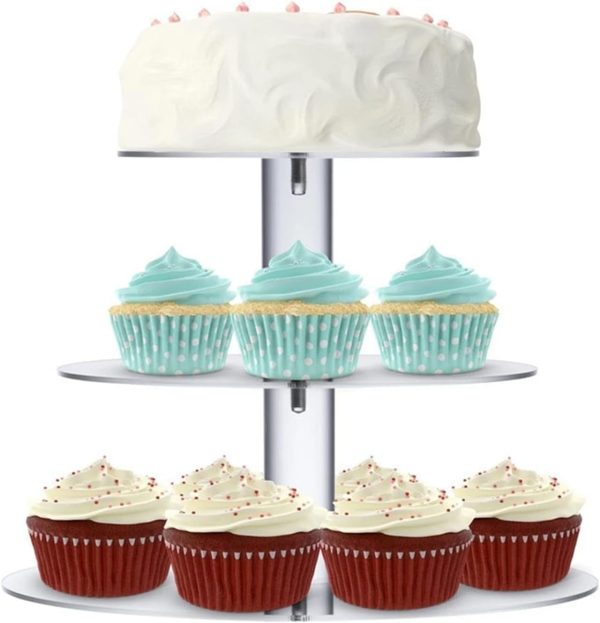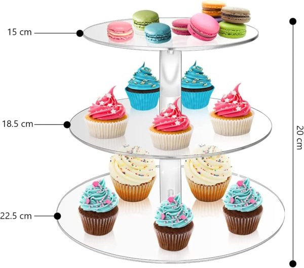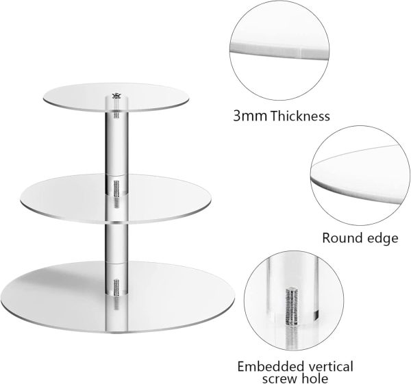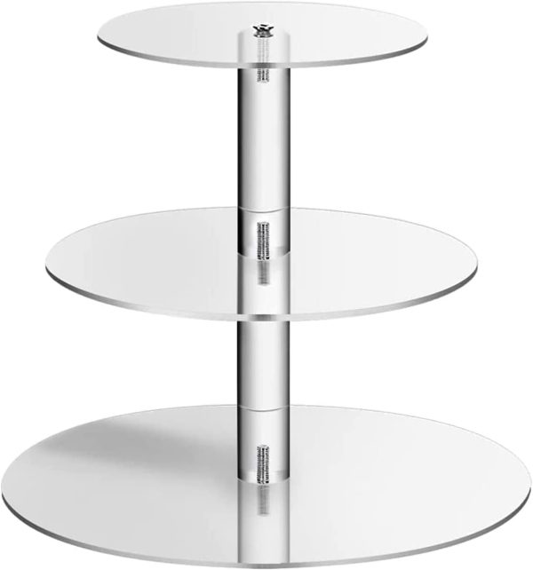 ARS® Acrylic Cupcake Stand, 3 Tiers Round Cupcake Stand Clear Dessert Tower Holder Display Tea Serving Platter Candy Bar Party Macaron Display Rack for Wedding, Party, Baby Shower, Clear