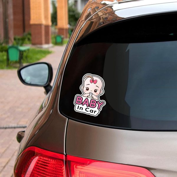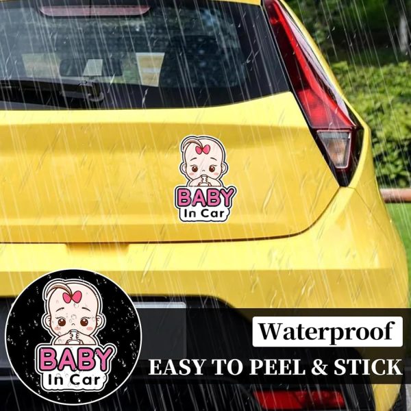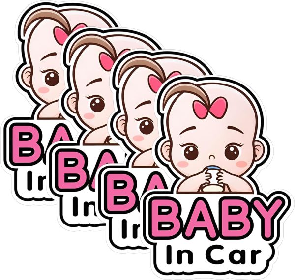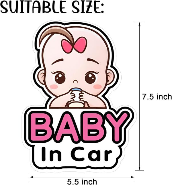ARS® Baby in Car Stickers, 5PCS 19x14cm Stickers for Car, Funny on Board Car Sticker with Character, Removable Baby Safety Warning Sticker for Car Door Rear Bumper Window (Pink)