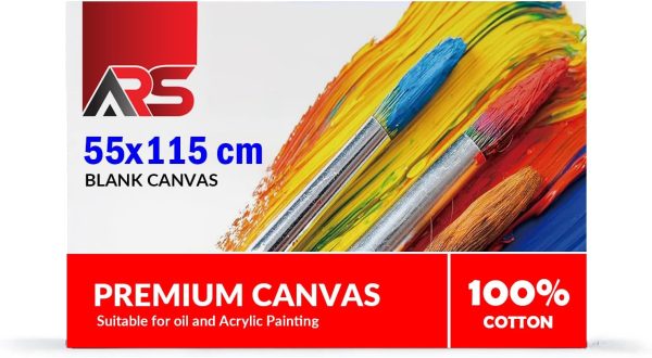 ARS® Blank Canvas 55 x 115 cm White – this premium-quality canvas 100% Cotton Artist Canvas Boards For Painting, Acrylic Pouring, Oil Paint Dry & Wet Art Media