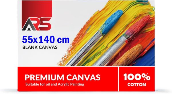 ARS® Blank Canvas 55 x 140 cm White – this premium-quality canvas 100% Cotton Artist Canvas Boards For Painting, Acrylic Pouring, Oil Paint Dry & Wet Art Media