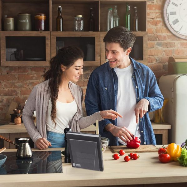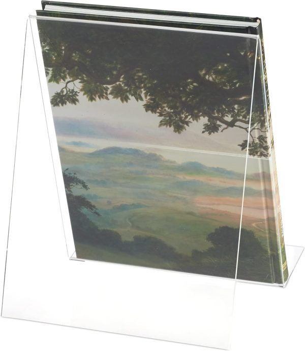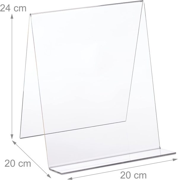 About this item Large: High stand for books with a DIN A4 and DIN A5 format – Size H x W x D: app. 24 x 20 x 20 cm Clear: Cookbook holder made of transparent acrylic – High-quality display of picture books, LPs, etc Sturdy: Robust book stand for thick books – Width of tray is app. 6 cm – Tray thickness is app. 3 mm Useful: Light product holder at an optimal angle – Stand for shelf or tabletop in kitchen or office Versatile: Universal holder for cook-, reading or school books – Decorative stand for vinyls & art