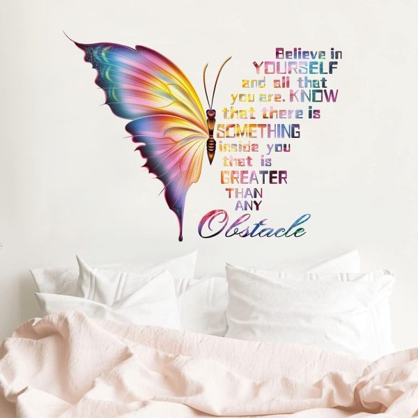 ARS® Butterfly Believe in Yourself All That You Are Inspirational Quote Wall Decals Stickers, Colorful Positive Saying Decoration Bedroom Living Room Art, Motivational Phrase Home Kitchen Decor Gift