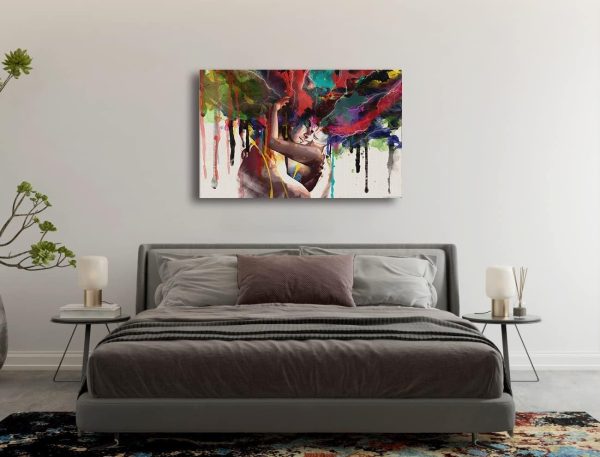 ARS® Colorful Abstract Pop Art Women and Men Banksy Graffiti Paintings Wall Art Canvas Prints Posters Couple Huging Wall Decor Pictures For Living Room Home Office Decor Framed (90x110cm)