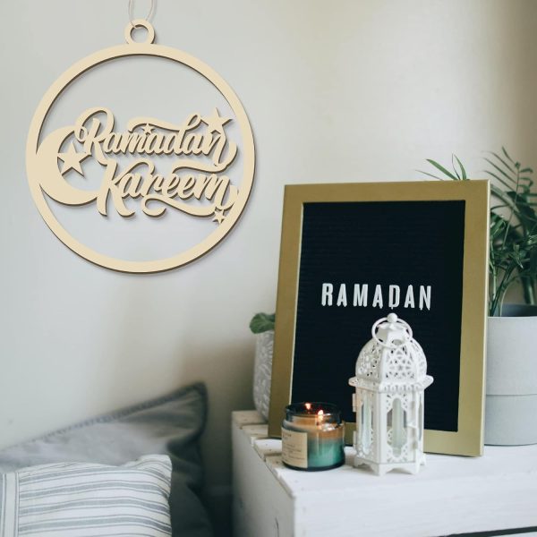 ARS® Eid Mubarak Decoration Wooden Ramadan Kareem Door Sign Round Al Fitr Hollow Wood Hanging Islam Wall Pendant for Muslim Home Room Happy Party Supplies