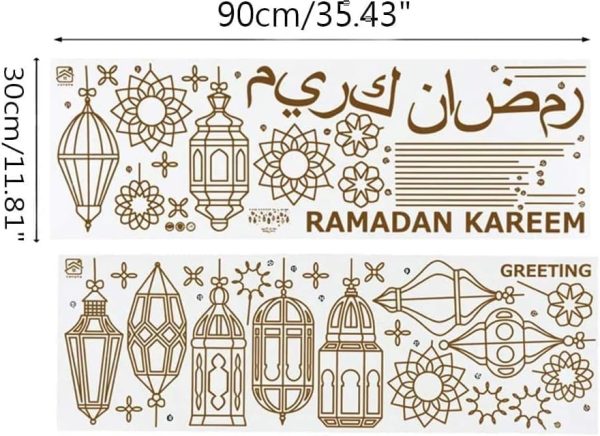 ARS® Islamic Muslim Wall Decor Stickers,Eid Mubarak Ramadan Glass Lantern Stickers Decals, Window Clings for Eid Ramadan Decorations, 90×30 cm