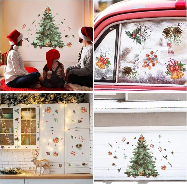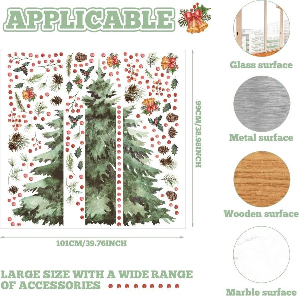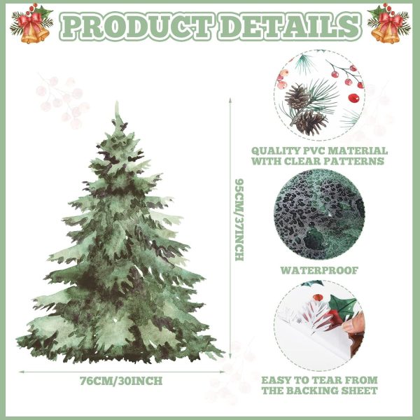 About this item Christmas Wall Decals: the Christmas tree wall decal is beautiful and composed of patterns like Christmas trees, berries, pine cones and bells, and the watercolor design makes it more exquisite and delicate, ideal for your decoration during Christmas Material: Sticker Easy to Apply and RemoveNo need for nails, glue, or tape Safe and Sturdy: made of quality PVC material, our Christmas tree wall sticker is well printed and not easy to break or fade, non toxic and odorless, convenient for you to stick and peel off without residuals, and easier to clean than other Christmas window stickers Large Dimension: the Christmas tree stickers are approx. 96 x 76 cm/ 37.8 x 29.92 inches, large size for your wall or window decoration, creating a beautiful scenery line and making the room more funny and warmer