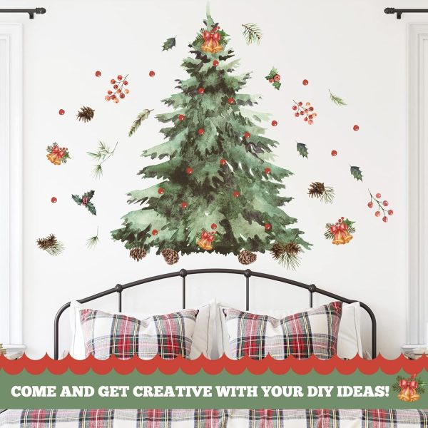 ARS® Large Christmas Tree Wall Decals DIY Christmas Wall Decals Peel and Stick Watercolor Christmas Tree Wall Stickers Removable for Xmas Bedroom Living Room Office Home Decor DIY Art