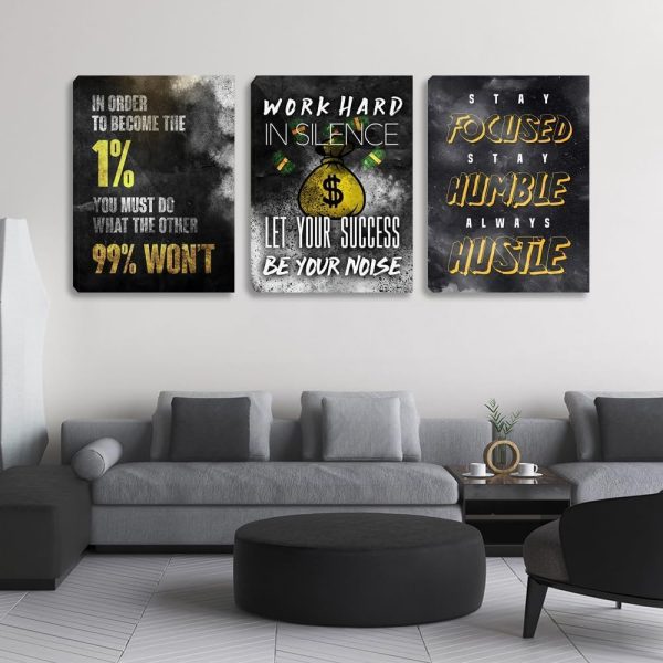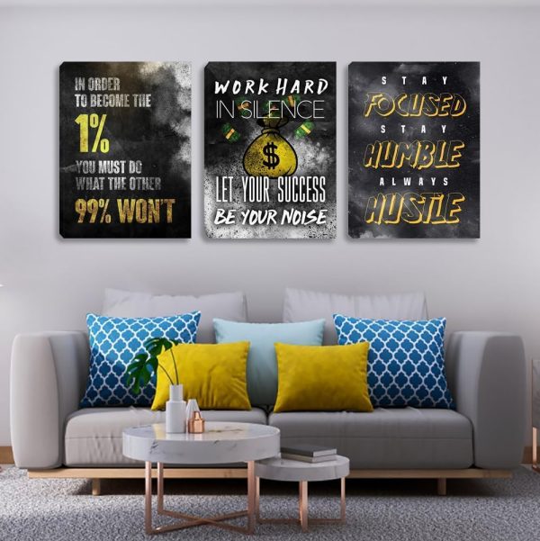 About this item Canvas Poster Prints Dimension : There are 3 separate canvases, total dimension: 60″W x28″H. Each panel size: 20″W x28″H. Measure the area where you want to hang before purchase, so that you can compare poster prints size and your area Motivational Office Wall Decor Material : The picture prints on canvas and stretched over a wooden frame. Each wall art decor with hooks mounted on the back, ready to hang on your wall Moitvational Wall Art : This inspiring artwork decorations is suitable for office, living room, bedroom, kitchen, hallway, hotel, restaurant, cafe, bathroom, apartment, dorm, school, bar, etc Framed Artwork Decor : The inspirational canvas poster prints artwork is choice for Christmas, Birthday, Wedding, Anniversary, Thanksgiving, Mother’s Day, Father’s Day, Valentine and other important days. 66 panels canvas prints describe inspirational wall art motivational wall decor picture Vibrant Poster Wall Decor : These pieces of inspirational wall art can vividly bring the positive attitude they showed into life. Decorate it in your office and home to add vibrancy