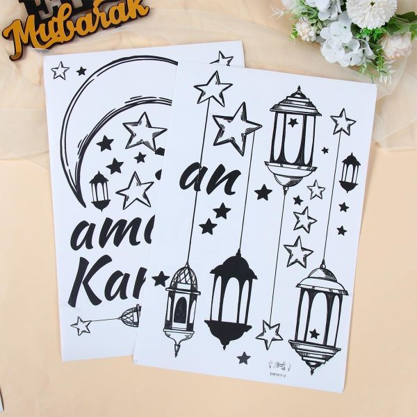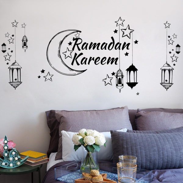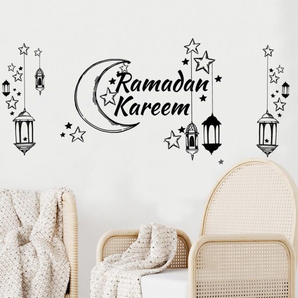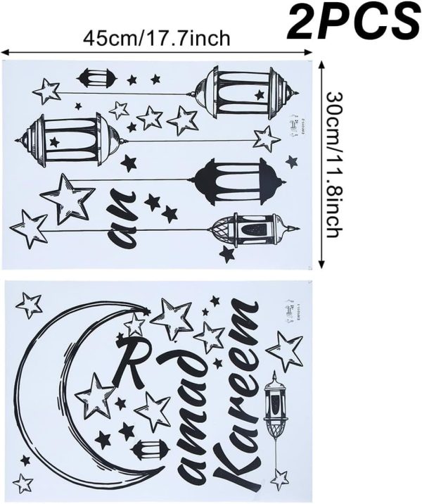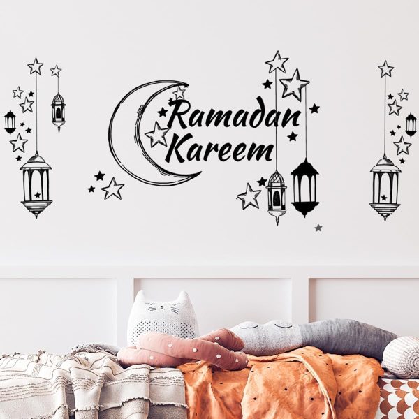 ARS® Ramadan Wall Stickers Decoration Eid Mubarak Decor Ramadan Kareem Stickers Wall Art Decals Moon Star Lantern Window Clings Wallpaper