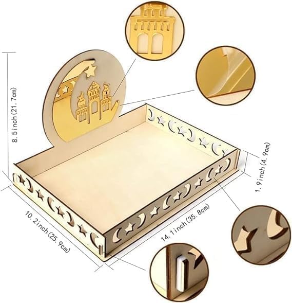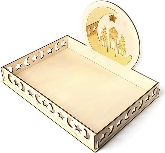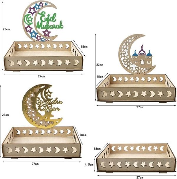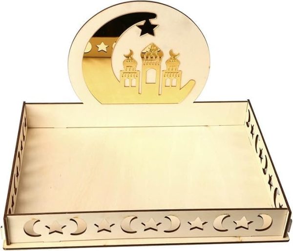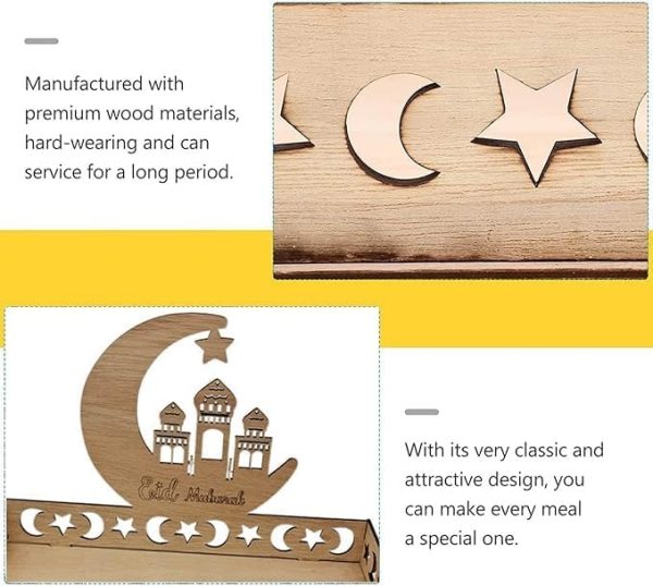 ARS® Ramadan Wood Tray Moon Wooden Star Tableware Eid Mubarak Party Serving Tableware for Breakfast Dinner Dessert Pastry Display Holder Decoration Ornament