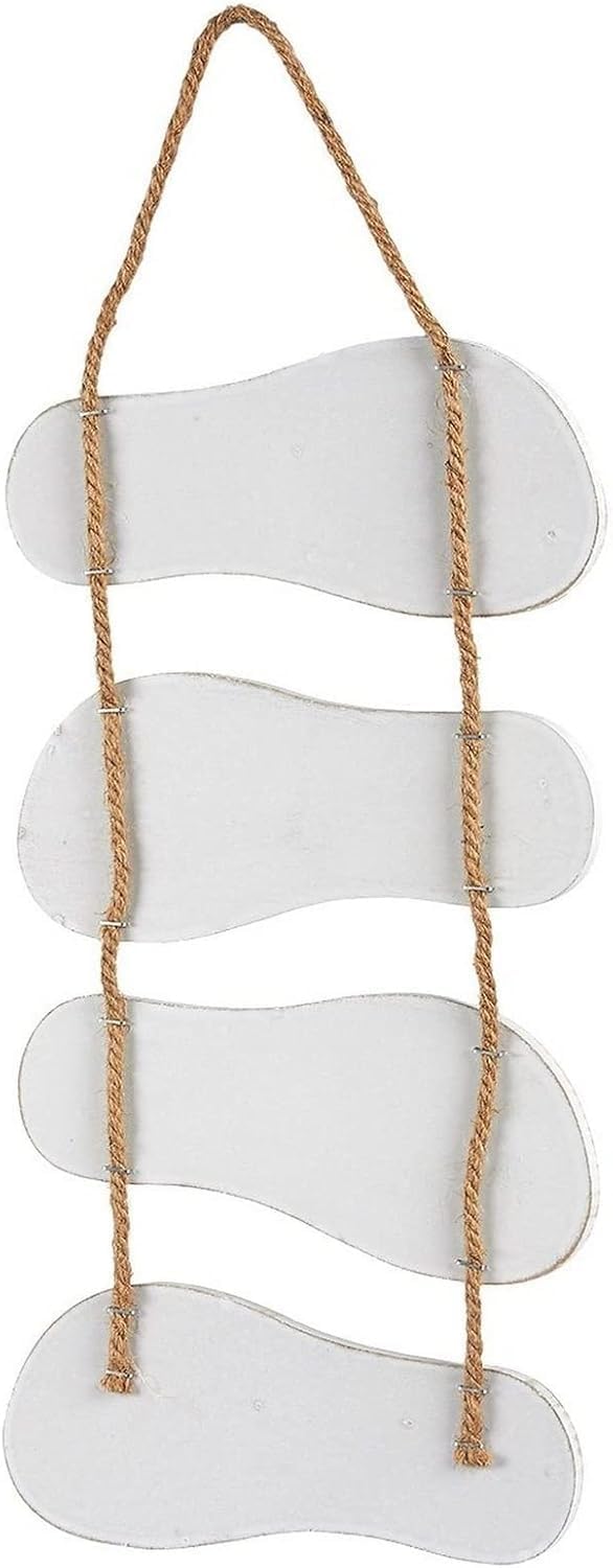 About this item Beach Signs for Home Decor: This flip-flop hanging ornament will make the perfect seaside or nautical addition in the bathroom or bedroom of any seaside or lake house Multi-Purpose: Hang the cute flip flop beach decor indoors or outdoors in your pool house, garden, patio, hallway, porch living room; you can also use it as beach house gifts for friends and family Hang Loose: This nautical beach theme decor ornament is made of durable, lightweight wood with faux seashells and a rope handle to easily hang just about anywhere Anchor Your Room: This charming beach wall décor sign is perfect for any coastal-themed room; measuring about 8.7 inches in width and 20.9 inches in vertical length, it will make a bold statement on any wall Shell-abrate Your Love For The Beach: You will receive 1 cute “the beach is my happy place” beach wall art sign with four flip-flops attached to it for your summer or beach house decor