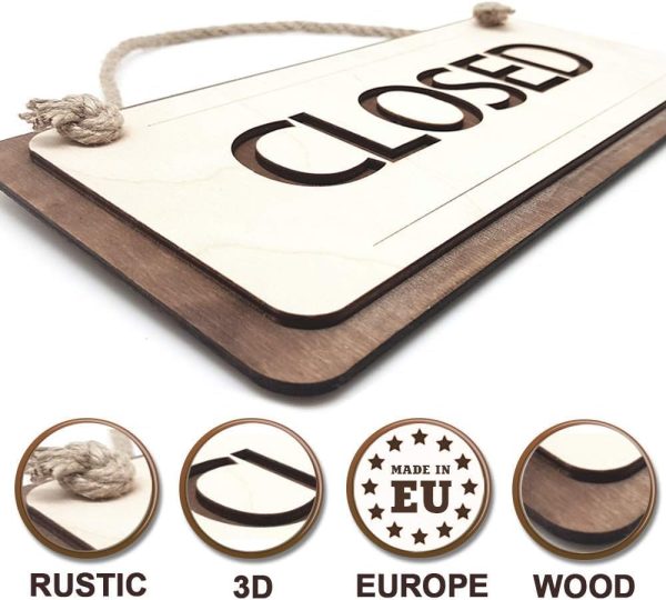 About this item ☑️ PERFECT SIZE: 12х6 Inches. Easy to read from outside! Rustic Open Closed Sign. As you can see, the design of our double-sided open closed sign is simple but chic; The three-layer wood highlights its three-dimensional sense, which is both exquisite and elegant; This sign can well match any scene, suitable for outdoor and indoor use. ☑️ CARVED FROM WOOD: Our wooden open closed sign is made of 3 layers. The true beauty of wood open sign can’t be replaced by plastic or metal products, it can make your shop full of warmth. Good quality and expensive looking!! ☑️ WOODEN OPEN CLOSED SIGN: Let your customers know you’re open for business with one side and simply flip over to let them know you’re currently closed. Add functional and useful charm to your business door or window. Wooden Rustic Open and Closed Sign! ☑️ WOODEN DOUBLE SIDED OPEN AND CLOSED: A Characteristic and vintage design Open and Closed Sign for Store Business, perfect decoration for hanging in bar, club, cafe shop, clothes store door and window. Make your shop more unique and attractive. ☑️ PERFECT FOR ALL, Open Closed Sign with will be good as for beginners and for advanced businesses. Suitable for any purpose: business, restaurant, house, barber shop, store, bar, cafe, hotel etc. Looks great in your store window and front door!! Open sign for business made in EUROPE.